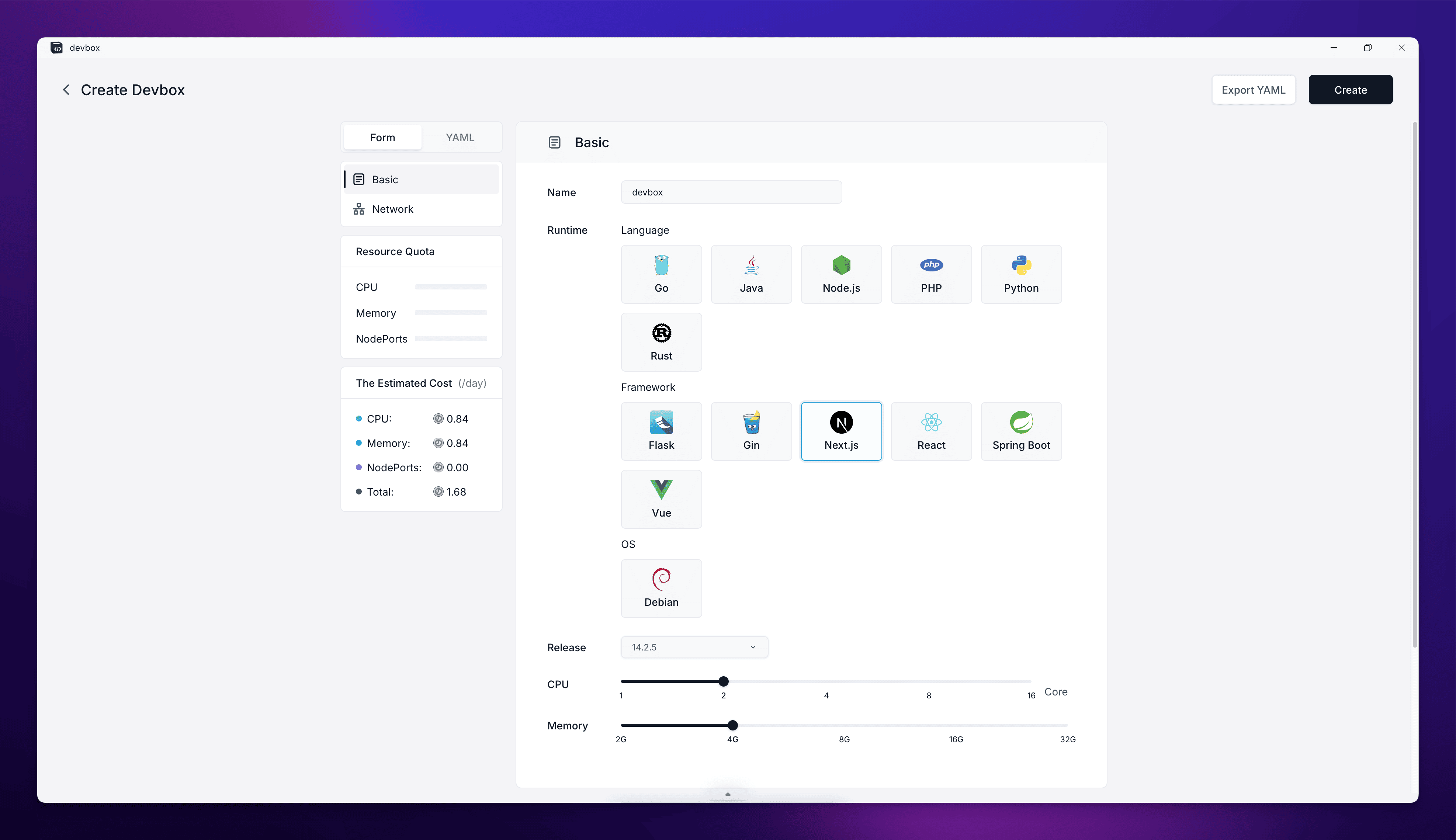 Sealos DevBox provides quick and easy setup of development environments for a wide range of programming languages and frameworks, including less common ones. This feature enables teams to start collaborating instantly, regardless of the technology stack they're using.